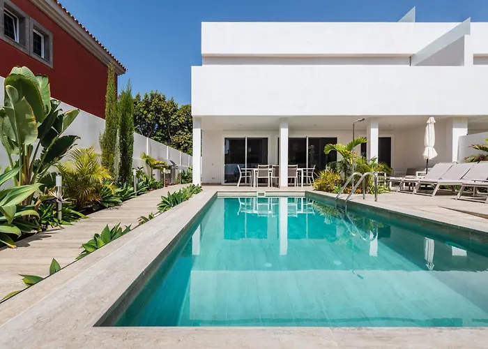 Deze 4-slaapkamer Villa Deluxe Suites Maspalomas bevindt zich op korte rijafstand van 10 minuten van de Paseo Marítimo en beschikt over een terras met uitzicht op de berg. Deze villa nodigt gasten uit om te ontspannen in een privézwembad en bevindt zich in een woongebied van Maspalomas.